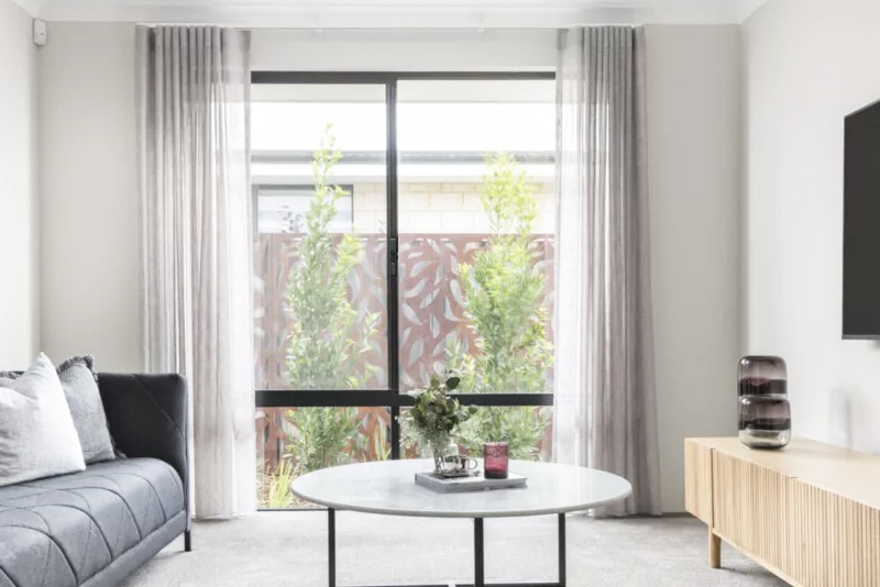 Tampoco dominan la habitación. Las ventanas corredizas quedan planas contra la pared, por lo que no crean desorden visual. Eso importa cuando tu sala de estar ya está ocupada con muebles y decoración.
