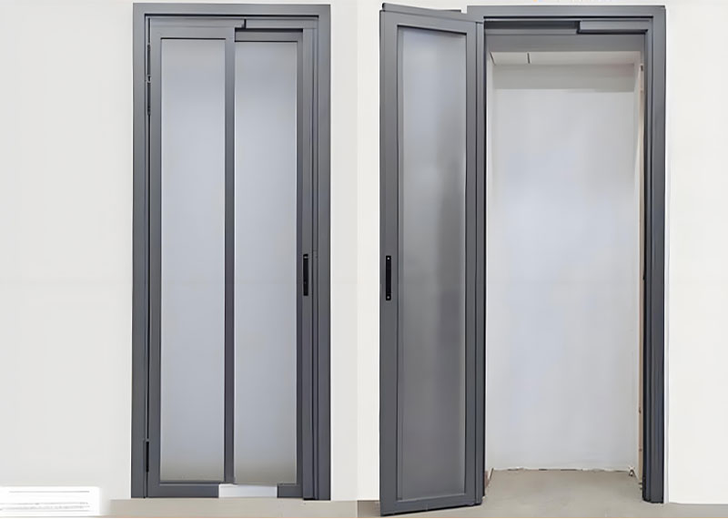 The dual-function mechanism allows the door to partially slide and pivot, reducing the clearance needed for opening. This can save up to 75% more space compared to standard hinged doors.