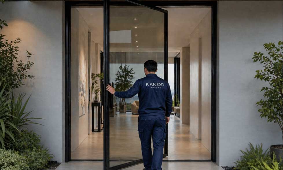 Kanod Windows is a professional pivot door manufacturer specializing in custom aluminum pivot doors for villas, luxury homes, and commercial projects. Our pivot entry doors are designed for large openings, modern aesthetics, and reliable long-term performance.